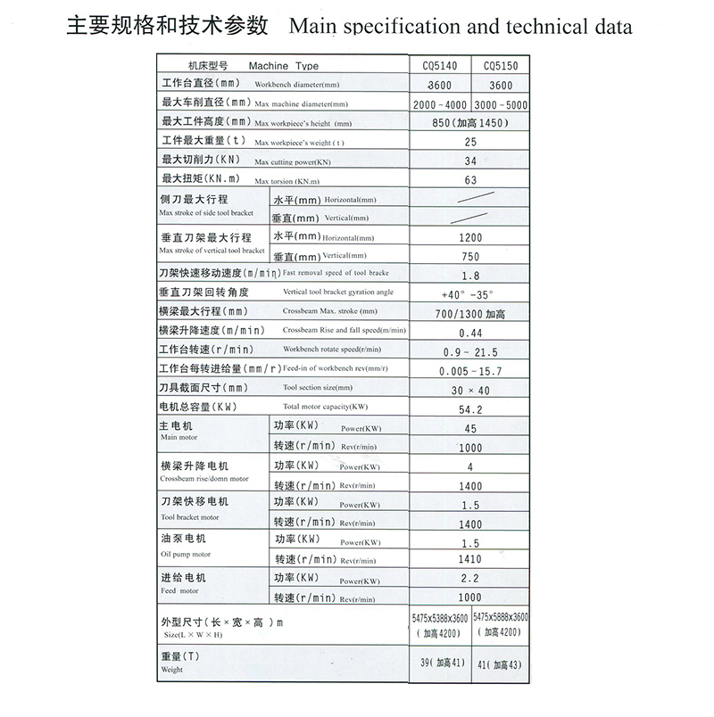 CQ5140、CQ5150單柱立式車床